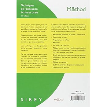 Savoir écrire, savoir parler, c'est un besoin et c'est un atout dans la vie quotidienne, sociale, professionnelle, et en particulier quand on étudie. Chaque individu qui désire perfectionner ses capacités d'expression et de communication doit être convaincu que cela est possible. Les techniques de l'expression écrite et orale répondent à cette demande. Par une méthode active, des conseils concrets, de nombreux exemples, par une centaine d'exercices vivants dont un grand nombre avec leur corrigé, cet ouvrage permet à chacun d'améliorer ses prestations écrites et ses interventions orales. Cette nouvelle édition refondue et actualisée, met entre les mains des étudiants et du grand public, un outil efficace de formation personnelle et de promotion professionnelle. - Rechercher, formuler et classer l'information - Construire un plan - Argumenter et réfuter - Résumer - Introduire et conclure - Rédiger note, compte rendu, questionnaire, directive, correspondance, demande d'emploi, CV, communiqué de presse' - Savoir se présenter, improviser, faire un exposé, téléphoner, discuter et travailler en groupe,'négocier' - Rédiger un rapport - Etablir la synthèse de plusieurs documents - Constituer un dossier
